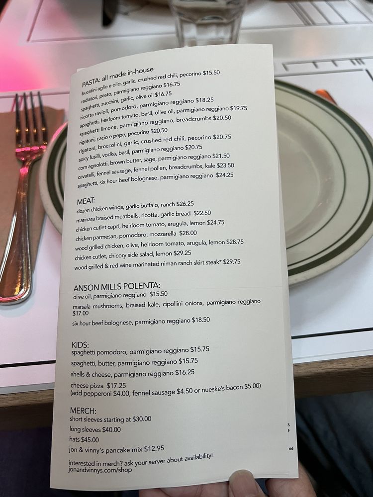 Introducing the menu at Jon & Vinny’s Fairfax, a casual and vibrant Italian eatery in Los Angeles. Known for its delicious white pizza, spicy fusilli pasta, and gem lettuce salad, this restaurant offers a variety of options for lunch and dinner. Customers rave about the perfectly buttery and crispy pizza crust, the al dente noodles in the spicy fusilli, and the flavorful salads. The atmosphere is loud and casual, perfect for group gatherings or a relaxed meal with friends. With options for vegan and vegetarian diners, as well as beer and wine offerings, Jon & Vinny’s Fairfax caters to a wide range of tastes. The open kitchen concept and attentive service add to the overall dining experience, making it a go-to spot for Italian cuisine lovers in LA.